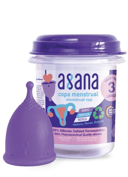 Silicone menstrual cup with sterilizer, 100% free of toxic chemicals.